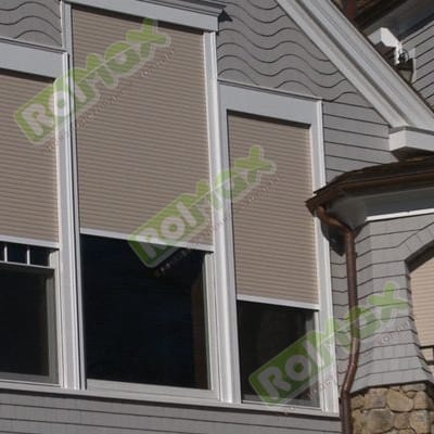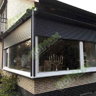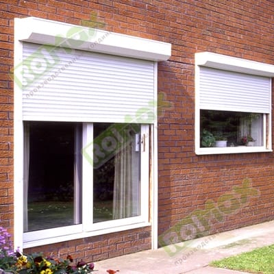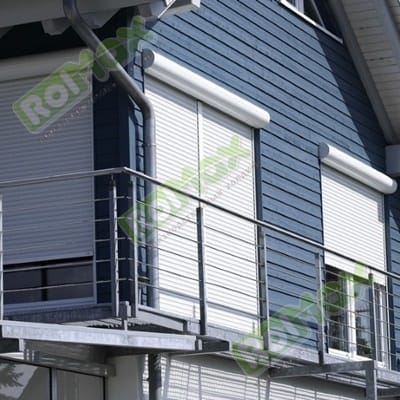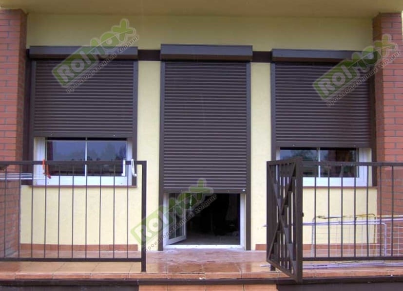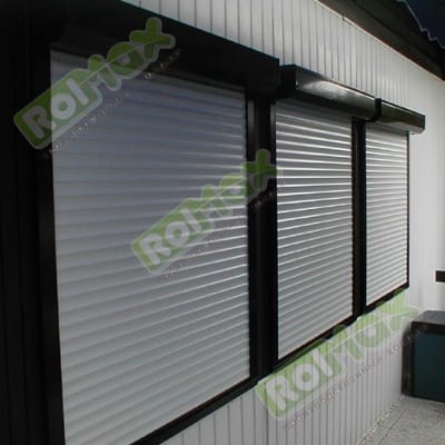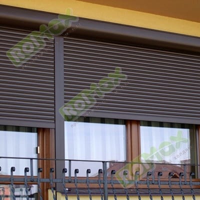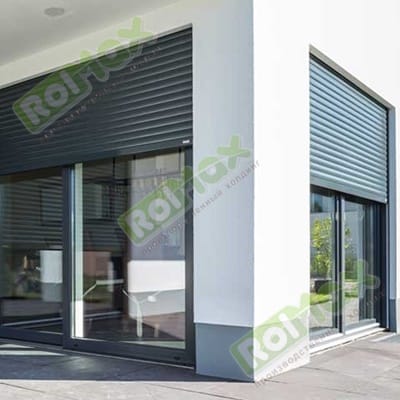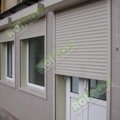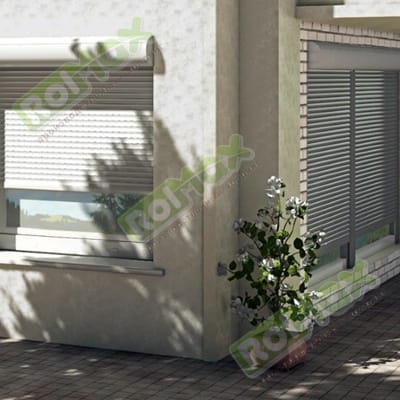 Наружные рольствани на двери — это полотна, состоящие из алюминиевых ламелей, скрепленных друг с другом крючками. В закрытом состоянии роллеты создают защиту дверного проема, а, открываясь, сворачиваются рулоном, который скрывается в коробе. Функция конструкции — защита от несанкционированного проникновения и снижение уровня шума внутри помещения.